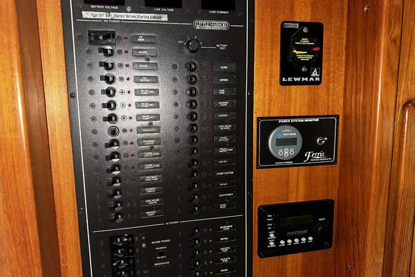 12 volt DC system and 110 Volt Shore Power System controlled by custom BASS switch / circuit breaker panel.