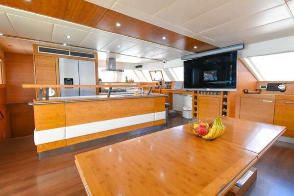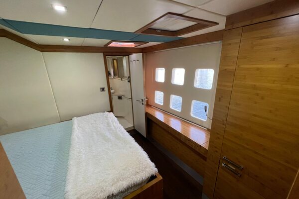 Excess is a gorgeous example of the Sunreef brand, renowned for their exceptional build quality and luxurious fit and finish. She has a 4 queen cabin layout with 2 additional crew cabins. All cabins, including the crew cabins, have full A/C and en suite showers and heads. The beautiful real wood bamboo finish on the interior gives her a warm and inviting feel throughout. The Port side forward bow locker is equipped with a complete workshop including tools and workbench. A custom bar and sink were added to the cockpit for a huge improvement to guest entrainment and comfort. Her factory options include a carbon fiber mast and park avenue boom.Originally launched in Dec 2011 as hull # 9 of the Sunreef 70 series. Excess has sailed extensively throughout the Mediterranean and Caribbean. She has been consistently cared for by a professional crew and received comprehensive maintenance and yard periods, including a substantial refit in 2018. For the past several years, Excess has been operating as a successful crewed charter yacht based in St Thomas, USVI. She typically operates with 8 guests in 4 queen cabins, with additional accommodations for 3 crew. She is a turnkey operation ready to continue being run as a crewed charter business or transitioned into private ownership.Excess is fully equipped with all large yacht essentials. US and Euro power system. 2 bow thrusters, Air Conditioning, 2 Generators, water maker, underwater lights, teak decks, solar, wine fridge, folding props, onboard fuel polishing system, diving board, Ice makers, electric winches, Garmin electronics, new vinyl wrap, new salon windows, etc.Excess is available for showings by appointment in Ft Lauderdale, FL.