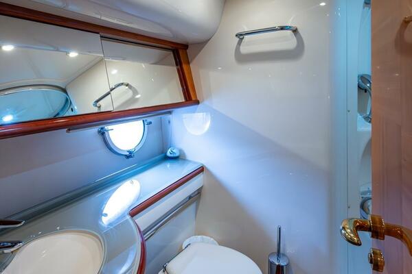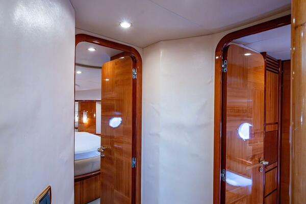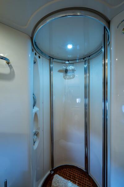 - Guest Head, Vanity, and Enclosed Shower across companionway
