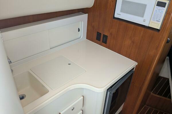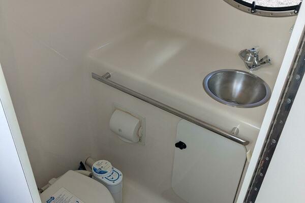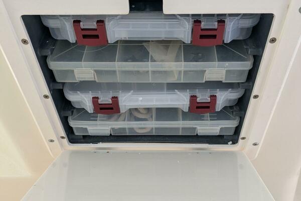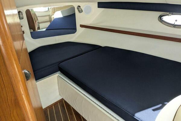 She has an amazing layout including the preferred forward double mate seat to port, with an cockpit-facing ‘mezzanine’ seat on the helm deck with huge live well and wet bar, all under a factory hardtop. Fish AND Cruise this gem. Roomiest cabin that you will find on a vessel less than 30'. ‘Get Goin’ has had several very conscientious owners and it shows. From the glossy gel coat to the well-kept engine room, and all of the upgrades and new gear, this boat will impress even the most particular boat buyer.