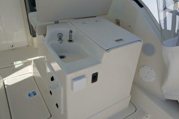 - Transom fold-down seat with new upholstery; new cockpit bolsters (2025)