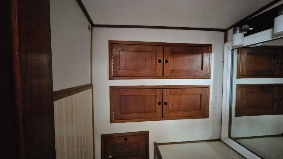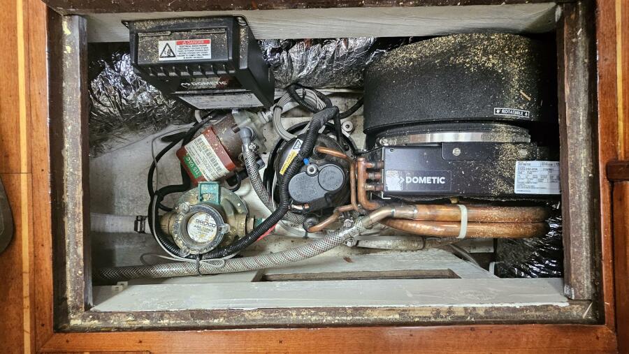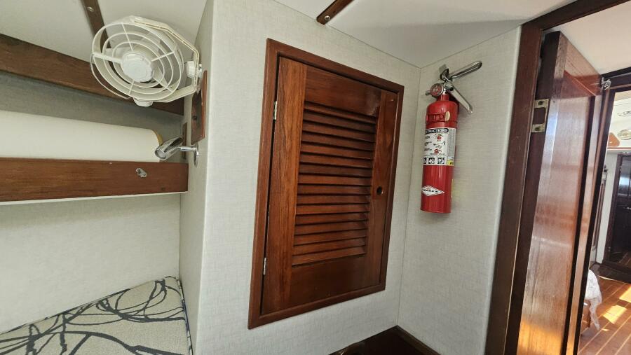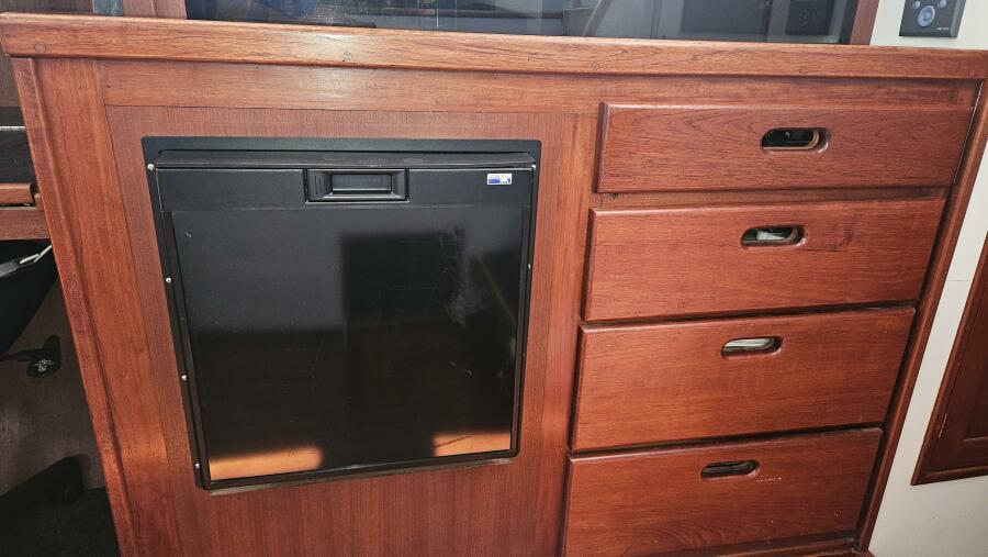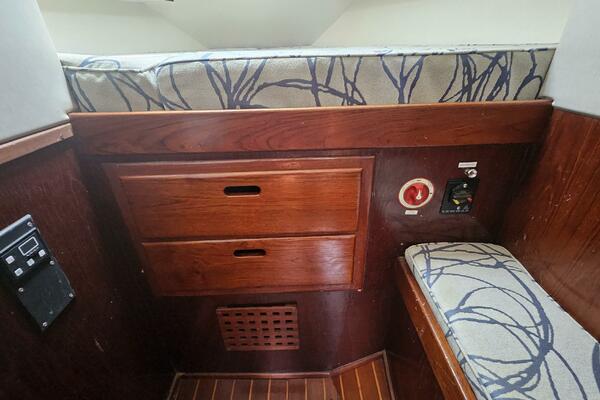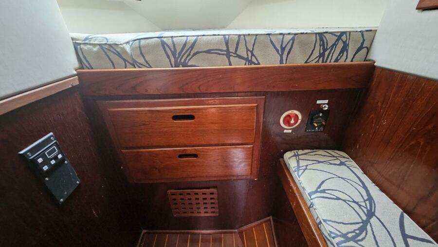 Tool and parts locker, 3 latching drawers and large storage area across from forward head.