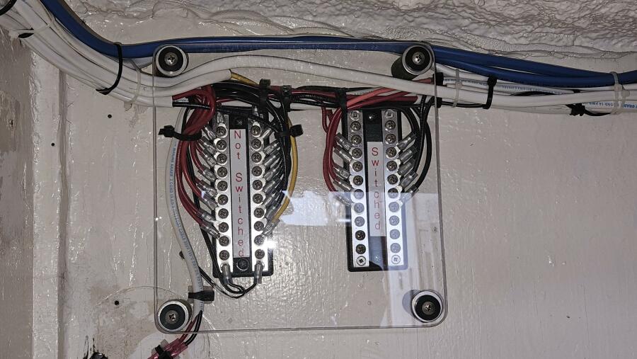 Complete rewiring to include: (2) New Blue Seas 110V panels and (2) New 12V Blue Seas breaker panels, new copper stranded wire, buss bars and connectors all to AYBA standards.