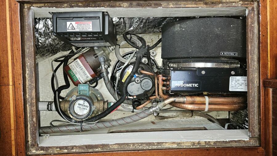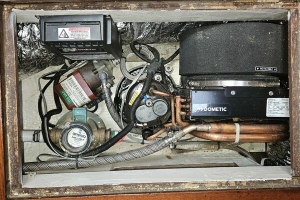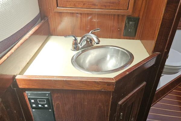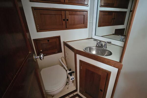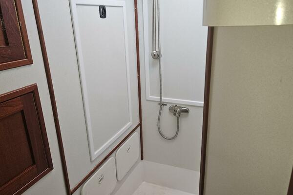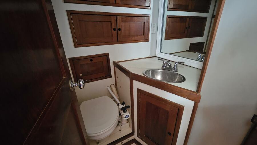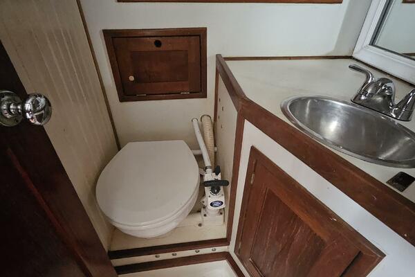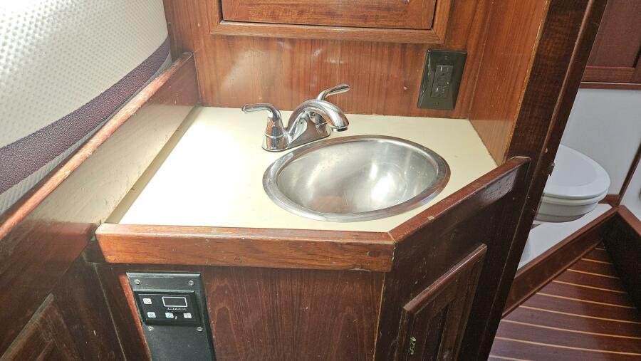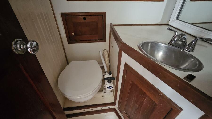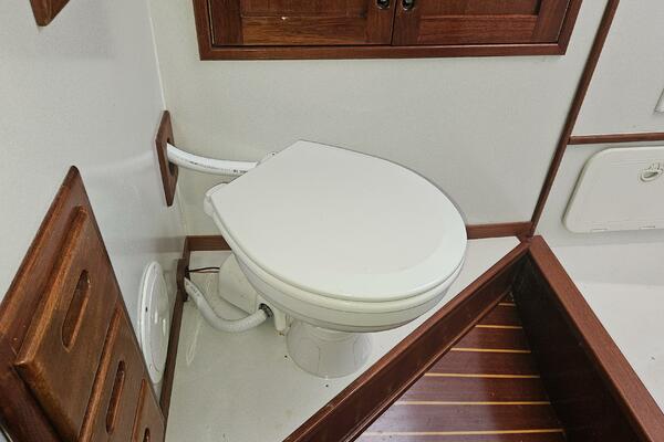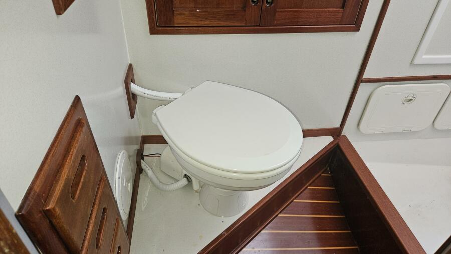 - Forward head: A head (plumbed for a shower) is located just outside the forward cabin and also serves as the day head.