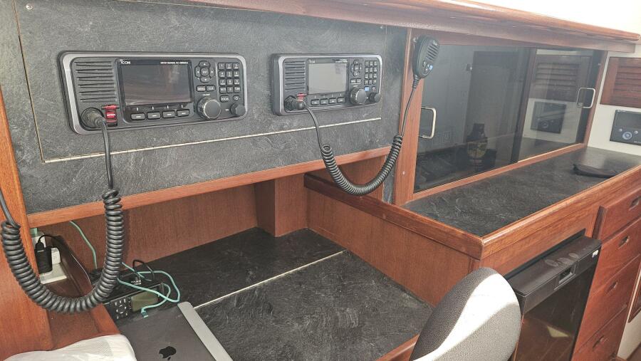 New electronics suite including Garmin 1243xsv GPS/Plotter, Garmin Radar, Garmin Auto Pilot head with Raymarine Ram, ICOM M803 SSB, ICOM M605 VHF with AIS, all NEMA 2000 integrated.