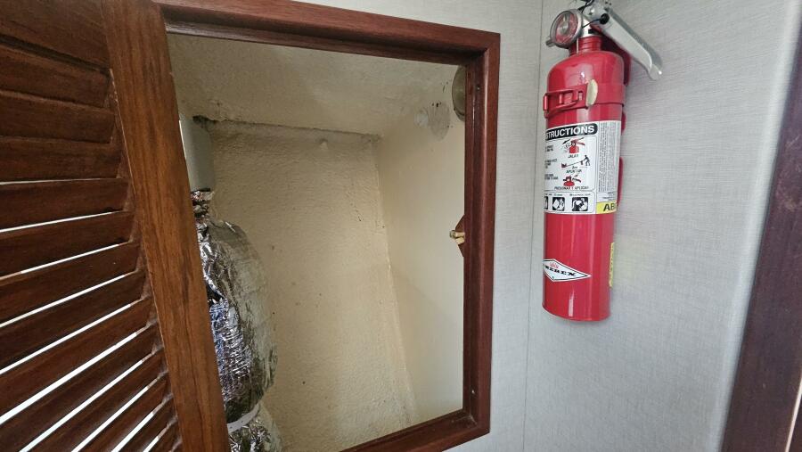 - Deck Salon, Hatteras style headliners, wall panels, and fixtures with easy access to mast electrical connections. Large aft master stateroom with ensuite head, forward master with ensuite head, all well ventilated with ample fans; natural and LED lighting.