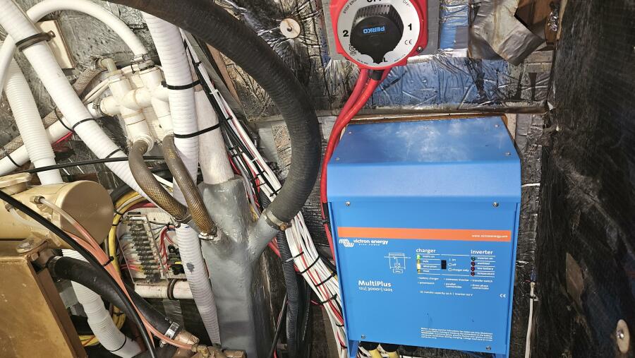 New Lewmar windlass, Vetus bow thruster with remote helm controls and a dedicated battery. New Victron inverter/charger/controller with remote indicators.