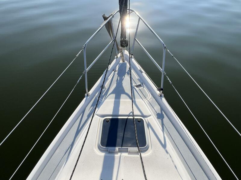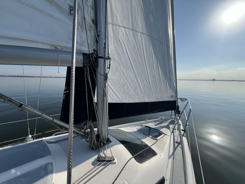 Wing keel (shoal draft) configuration paired with a balanced spade rudder delivers responsive handling, predictable tracking, and solid performance to windward.