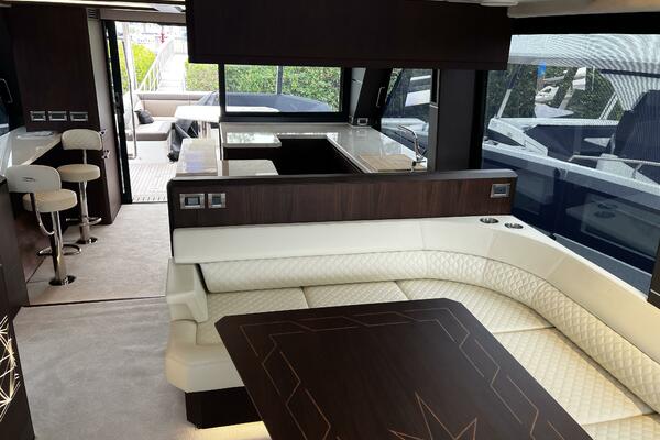 The Galeon 640 FLY, "Joie De Vivre", represents the pinnacle of luxury entertainment on the water. Its innovative layout seamlessly blends spaces for dining, socializing, and unwinding, ensuring guests enjoy a natural, effortless flow from one area to the next.