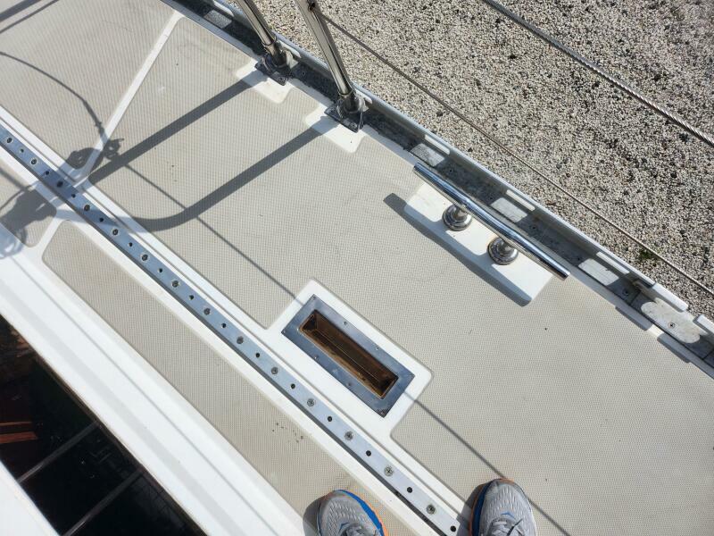 There is some evidence of moisture in the deck around the chainplates and some stanchions.