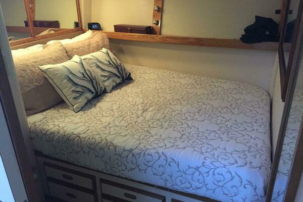 1987 was the last production year, Galley down 2 state room with the optional light Oak interior that was completely updated in 2003, and the only year to offer 475hp Detroits and the restyled flybridge.