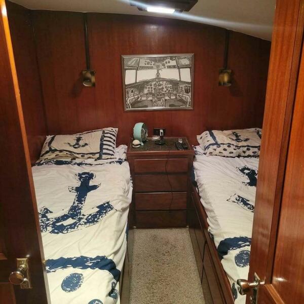 1973 Hatteras 53 convertible sportfish. Powered by twin Detroit 12V71 naturals. 1440 hours indicated on rebuilds. 15 kW Kohler diesel generator showing 2300 hours. Interior redone 6 years ago. 12 ft dinghy with 15 horsepower Yamaha on the bow. 1,000 lb davits lift with remote. Cutlass bearings replaced 4 years ago. All new transmission and throttle cables 4 years ago. Too much to list. Very solid. Cruises 18 knots at 1900 RPM. Wet bar ice maker with liquor dispenser. Bottom paint 10 months old. $3,500 stereo in the flybridge. JL speakers Fusion receiver with 1600 amplifier. Garmin 7610 chart plotter. Two staterooms, two heads. Forward stateroom has bunk beds Captain's quarters has crew beds. 12 midsize dresser drawers in Captain's quarters. Seven large dresser drawers in the forward birth. One closet in the forward birth, one closet in the captains quarters. Located in Madeira beach FL 33708.