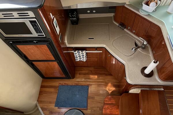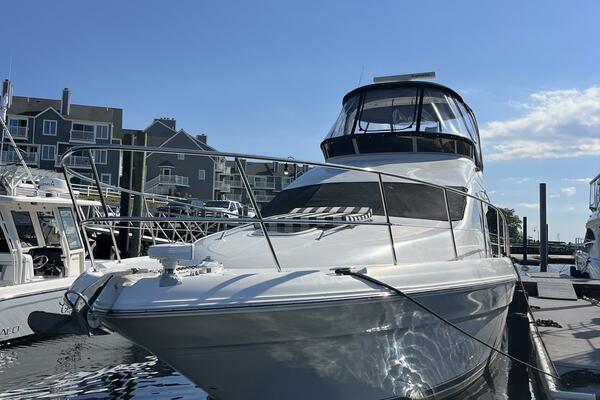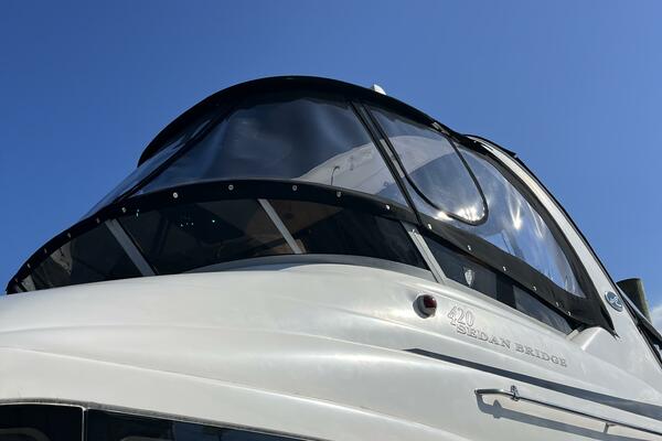 No matter where you plan to go, you'll arrive in style with the 420 Sedan Bridge. From its seamless fiberglass spoiler and Sunbrella soft top to its graphic striping at the water line, this impressive sport yacht is sure to command attention. And thanks to the power of its twin 8.3 Cummins engines no matter where you're headed, you'll arrive ahead of the rest.