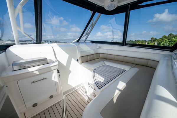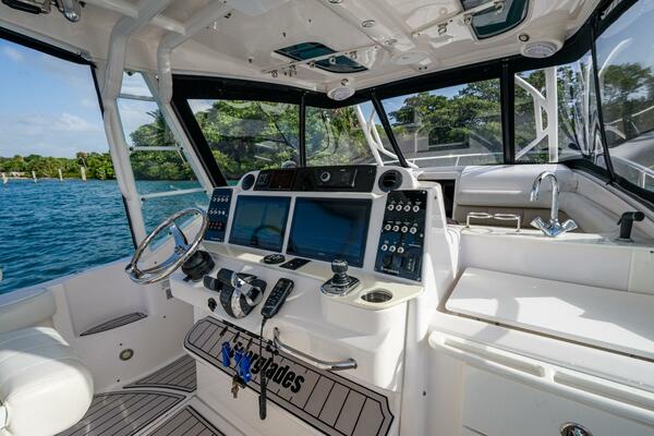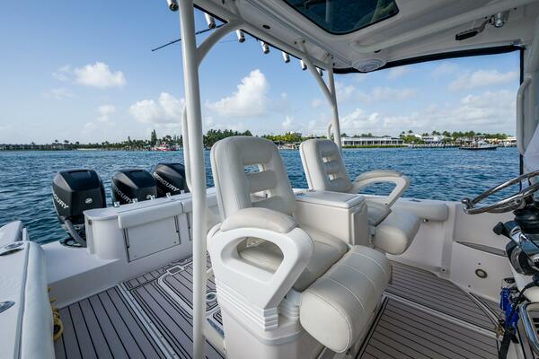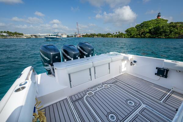 Excellent condition and continually upgraded with Mercury Verado 300hp motors running smooth and quiet. Mercury joystick piloting system all new or updated. Newer Garmin displays up and down, new radar and VHF. Fusion Apollo stereo with JL Audio speakers. Hull sides and motors are painted flat black. . New Isinglass, updated upholstery . Covers for virtually everything keeps the sun at bay. Generator replaced in 2022. SeaDek flooring and so much more. Current owner has kept her maintained but just doesn't have the time to enjoy it.