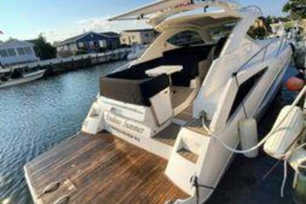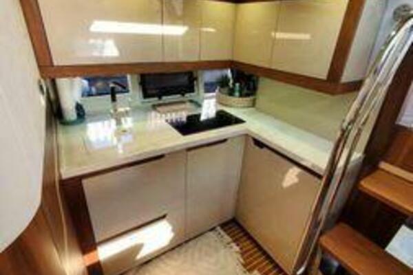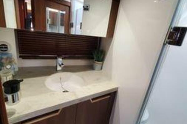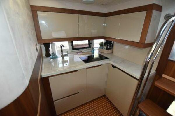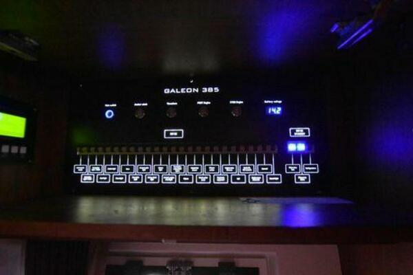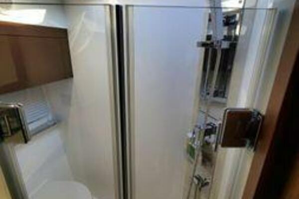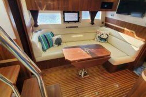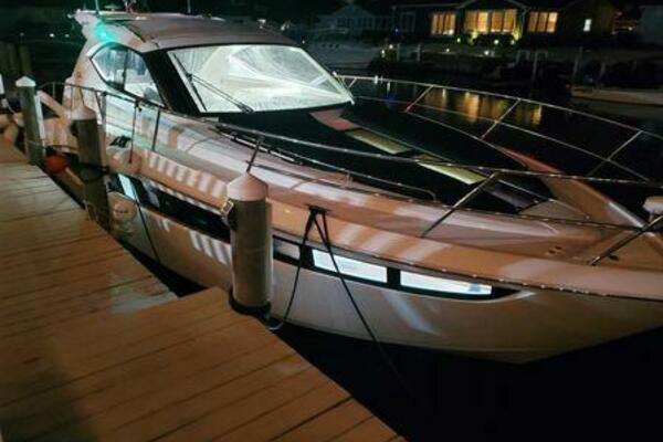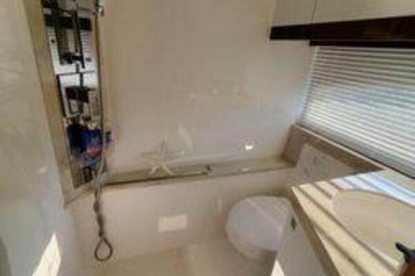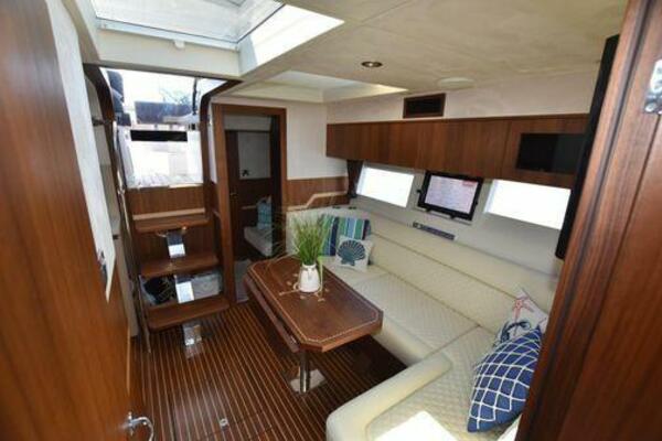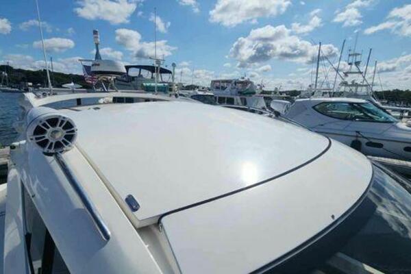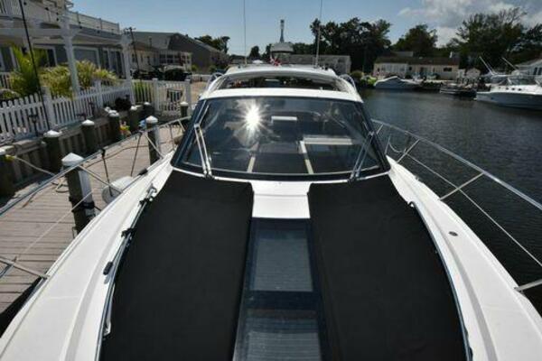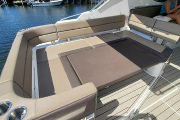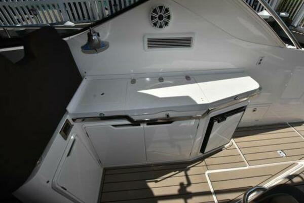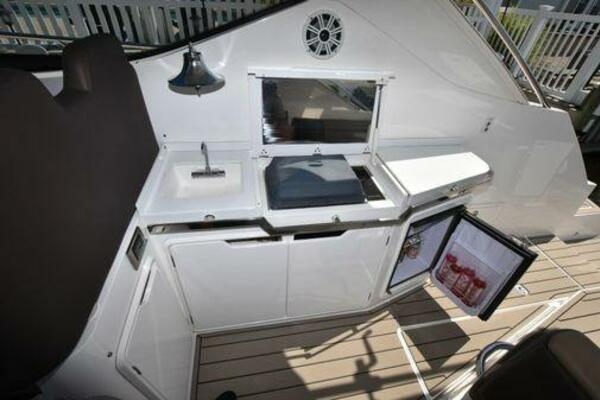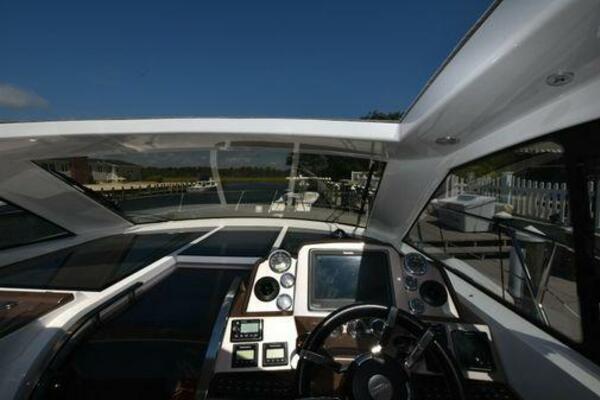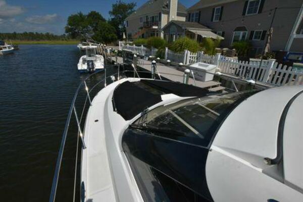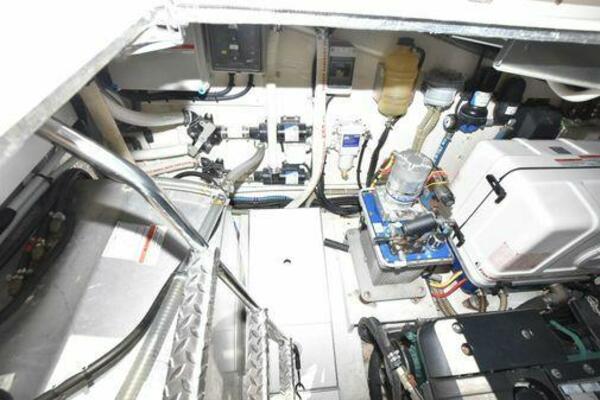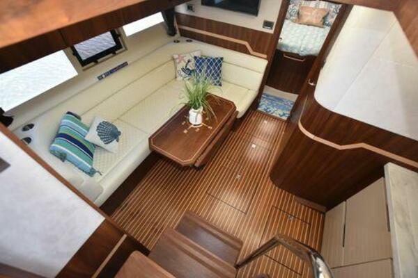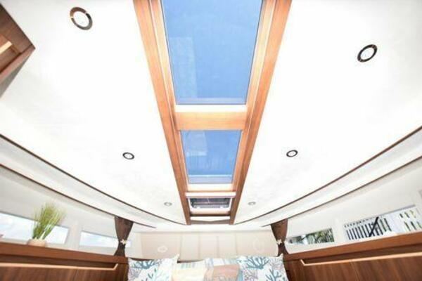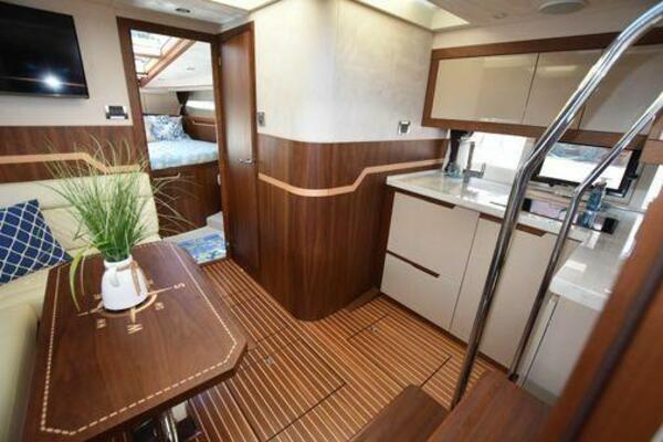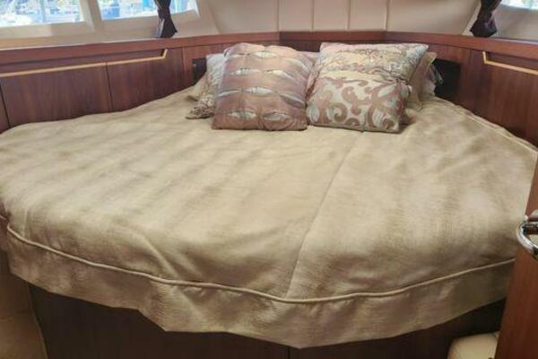 This boat has been meticulously Maintained. JOYSTICK CONTROL WITHOUT PODS!! Two heads and staterooms separated by solid wood doors. - Two Heads Sionix Night Vision $15,000 Sound system installed 2023 2 spare sets of Propellers New Raymarine Axiom MFD 2023 New batteries 2024 - A hydraulic dinghy garage at the stern of the boat, capable of holding a 9 foot dinghy - 6 foot teak swim platform - Teak and holly flooring in the cabin ( carpet covering included) - Diesel sterndrive power - Extremely efficient (26 GPH at 30 MPH cruise) tops out at 41 MPH This boat has amazing natural light. There are big windows around the cabin house, a huge sunroof that glides open quietly, an atrium effect in the lower salon from several skylights, and more skylights over the owner’s stateroom forward. Look at the details. Every drawer, locker and cabinet is fully lined with real walnut, some of it inlaid with maple. The stainless-steel rail welds and even the port lights (made in-house) are like fine jewelry. The layout of the master stateroom forward and the guest cabin aft under the cockpit isn’t unusual, but Galeon accomplished it with style (and full headroom). The master has a queen-size berth with a head en suite and a shower for the 3X sizes among us, and the aft cabin has twin berths that glide smoothly on tracks to become another queen for connubial couples. This also has its own head en suite with another 3X shower with a teak seat. Winter Canvas Cover for Cockpit High Quality Production Example of the 385/405 HTS Model Custom Single 50 Amp Shorepower with Reel Dinghy Garage has Hydraulic Hatch Lift