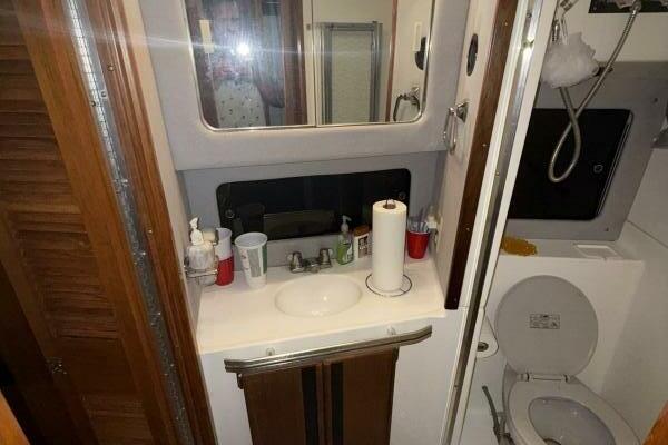 Wow! Space! Space! Space! This vessel is enormous inside the cabin, with a great covered aft for just hanging out and enjoying the weather. Amenities are not limited to, 2 State Room, 2 Heads, Full Bathtub, Washer, Dryer, and Caterpillar Diesel power plants!