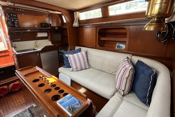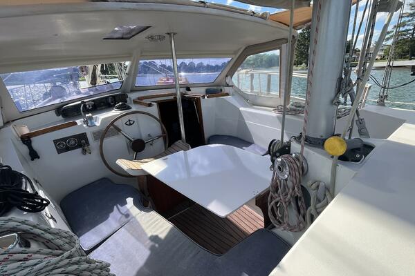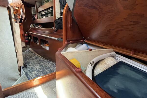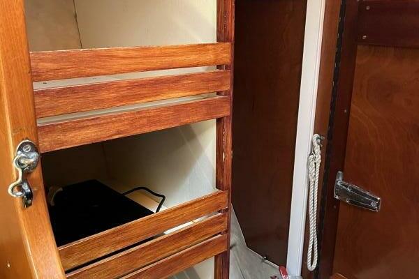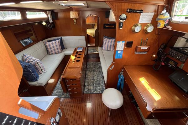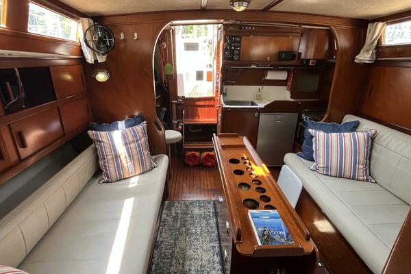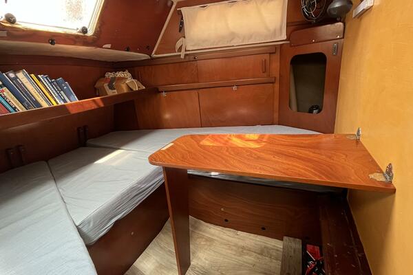- Aft cabin has several layout options with ample storage, fold down table, fixed windows and opening hatch.