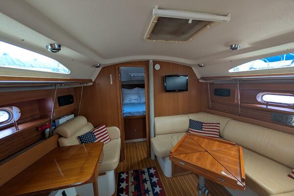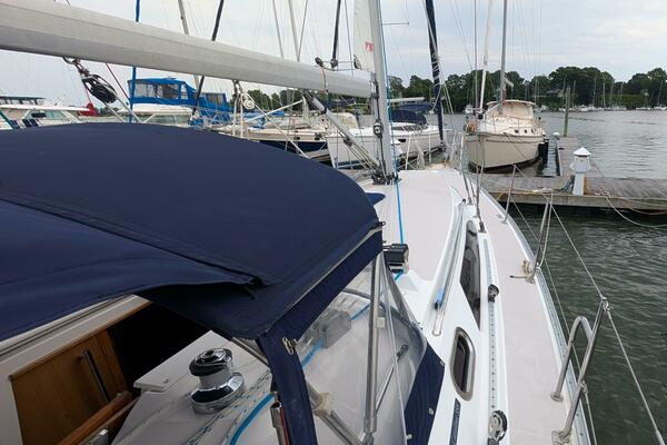 Sea Bella is a clean and well-outfitted example of the popular Catalina 355 designed by Gerry Douglas. This boat has all the systems needed to comfortably cruise, relax, and entertain, and sails like a dream. The shoal wing keel allows access to shallow anchorages, and the sail inventory is extensive. Sea Bella also features a Doyle UPS gennaker with a bowsprit and furler that is a significant upgrade and affords great sailing performance off the wind. If you are looking for a clean, comfortable, well-made coastal cruiser, Sea Bella is the boat for you!
