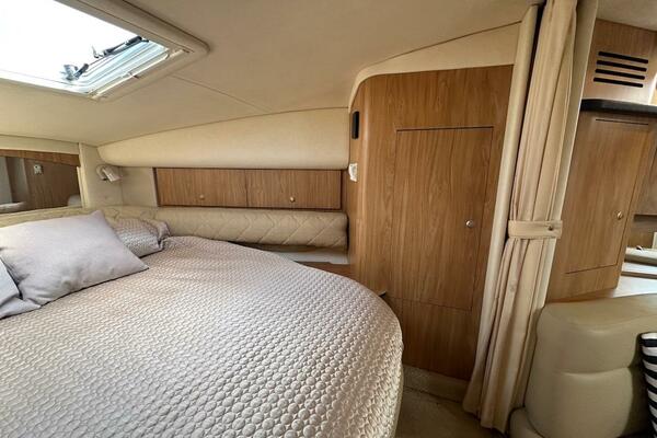 - Main Berth - Forward, Queen-sized island berth. Upgraded mattress