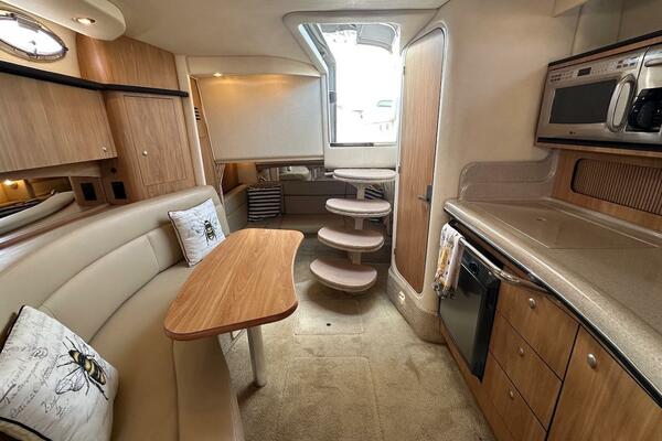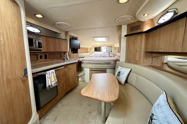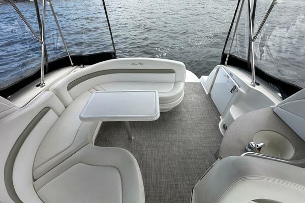 - Additional seating and bedding - Underneath the helm is the U-shaped seating area that can be converted into a sleeper for 2. (There's a curtain for privacy).
