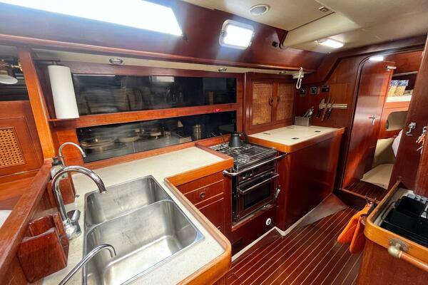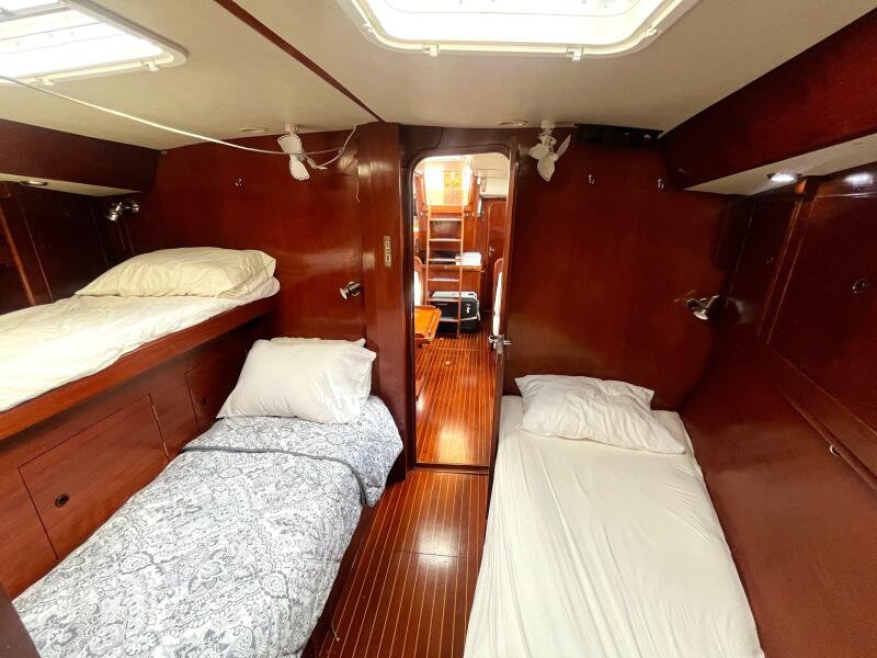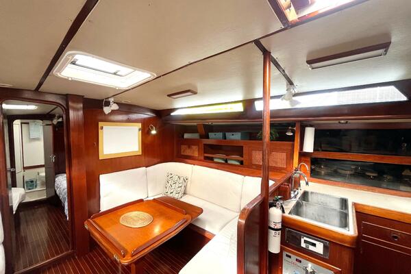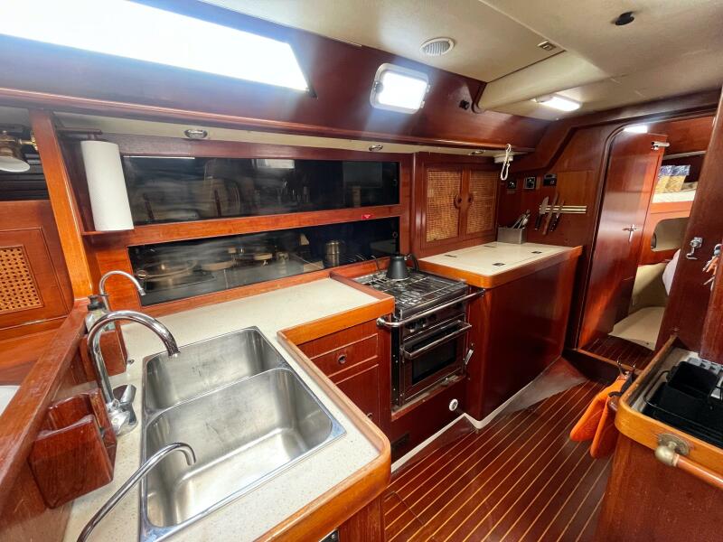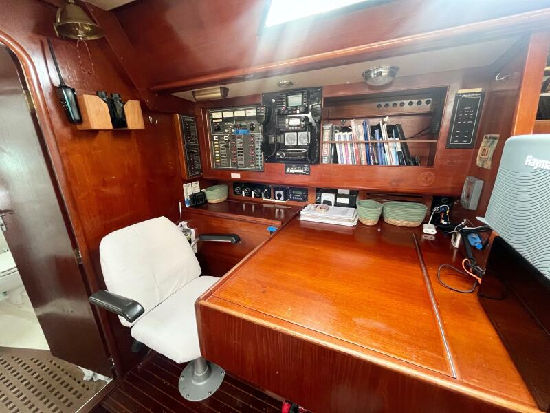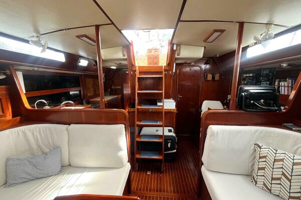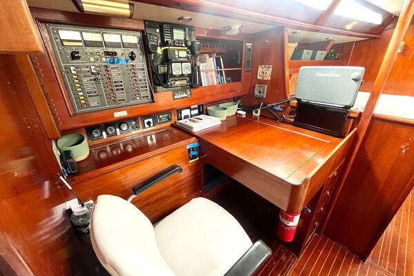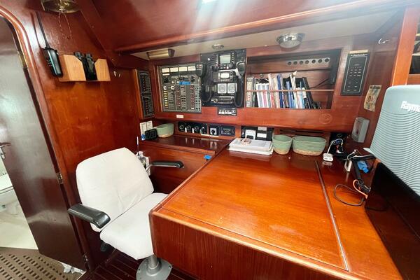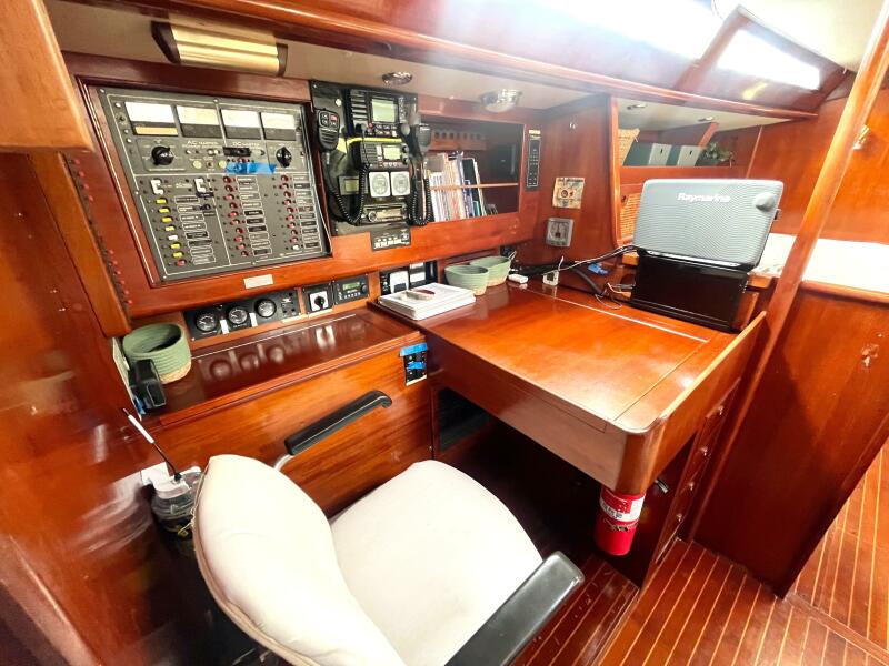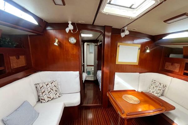 Sailing short-handed is easy, with hydraulic winches and furling systems offering effortless handling from the secure centre cockpit. Her standing rigging was recently replaced, adding to her offshore readiness.