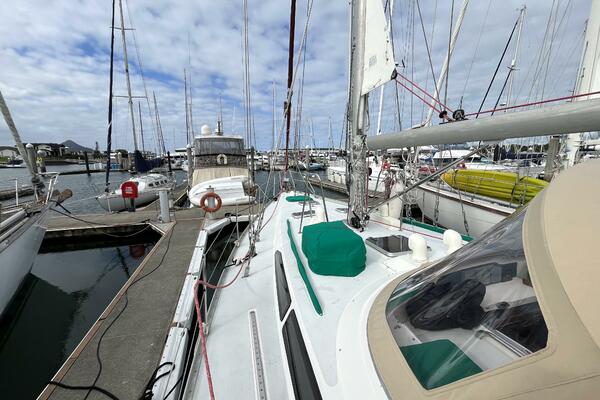 This solidly constructed centre cockpit yacht features a versatile two-cabin layout, including a spacious aft master suite with dual access. Her hydraulically operated swing keel reduces draft to just 1.45m, ideal for exploring shallow Pacific reefs and atolls. The hull is protected with Coppercoat antifouling for long-term durability.
