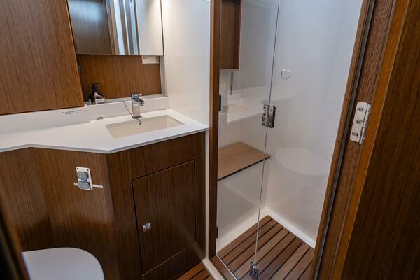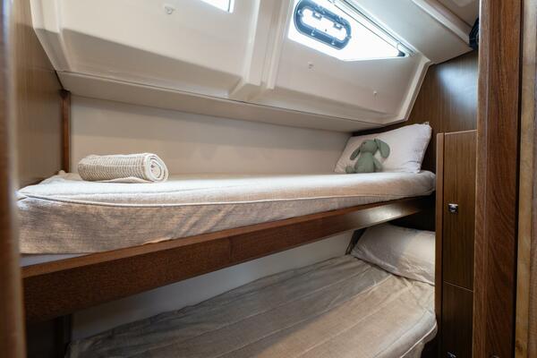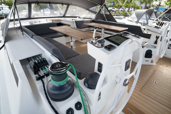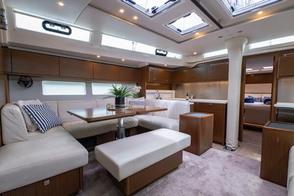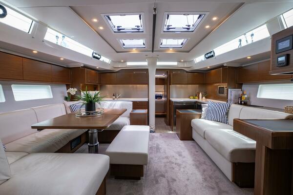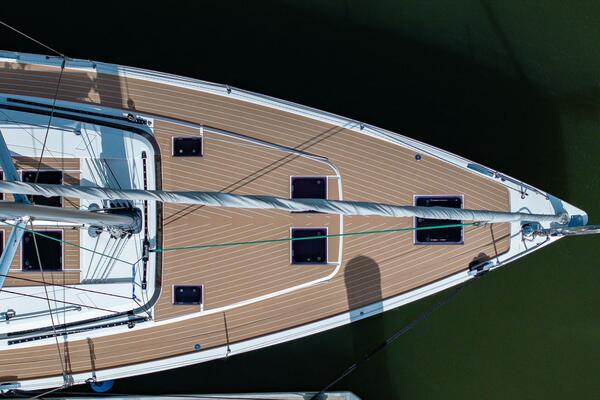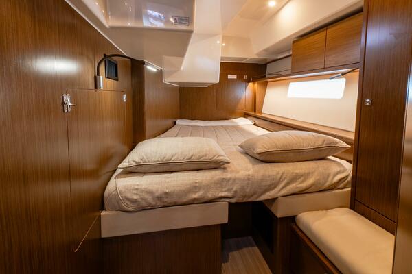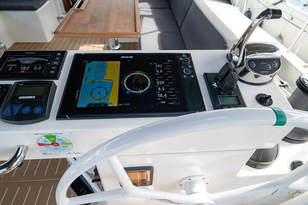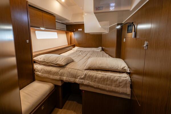 The two aft cabins each have large doubles with an ensuite to port, while the starboard side features a flexible bunk room ideal as a fourth cabin or storage. Performance-wise, Nixie’s 2.5-metre deep draft keel and North 3Di sails deliver excellent cruising speed. All sail controls, including electric Lewmar winches, furling mainsail, self-tacking jib and Code 0, are managed from the cockpit for effortless sailing.