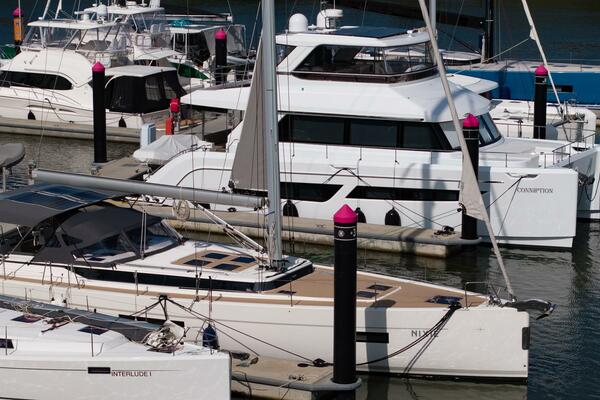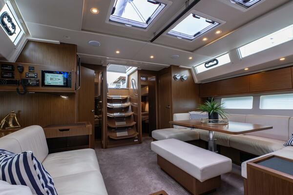 Additional features include an upgraded Yanmar 4JH110 engine, bow and stern thrusters, solar panels, washing machine, two sets of sails and an Ultra 45kg anchor.