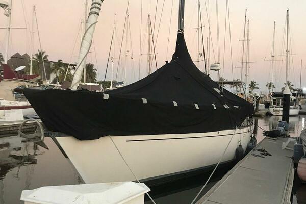 Northern Pearl" is a mast head rigged sloop, fin displacement keel monohull sailing vessel with aft closed cockpit, wheel steering, cockpit equipment lockers and center hatch access to the interior spaces that is covered with a stainless-steel tube frame Bimini and canvas dodger, the decks are an open plan camber side deck, low profile raised coach roof and open foredeck with all necessary sail control equipment.