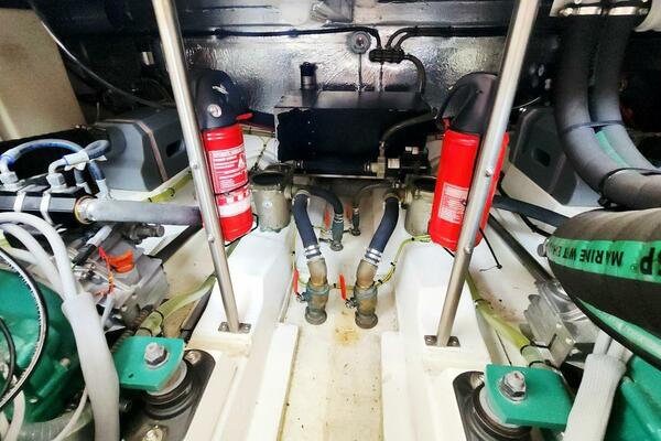 The Volvo Penta engines integrate seamlessly with the hybrid-ready generator system, ensuring a steady supply of onboard power whether you’re underway or anchored in a quiet cove. The generators work in harmony with the engines, charging the battery banks and keeping all onboard systems—from air conditioning to galley appliances—running efficiently without constant reliance on shore power. It’s a design that reduces fuel consumption, minimizes emissions, and makes extended off-grid cruising not only possible but enjoyable.