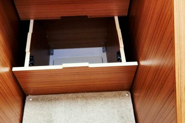 Forward, the dinette is the definition of versatile: breakfast nook in the morning, card table by afternoon, and with a quick adjustment it drops down to create an extra berth when company stays the night. To starboard, additional cabinetry hides away a pop-up TV, so movie nights are just a button-press away. Open the sunroof overhead, pour a glass of something cold, and you’ve got a living space that feels equal parts modern loft and waterfront lounge.