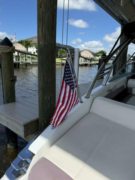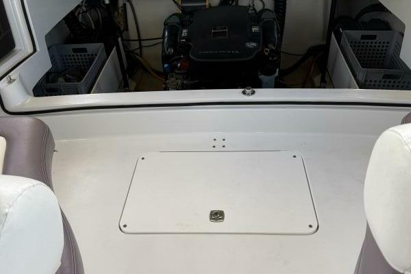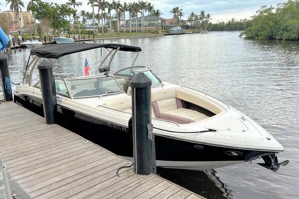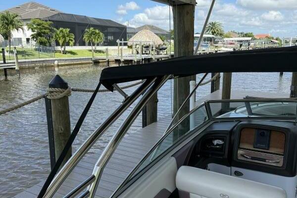 This particular 296 has been kept on a covered lift, sparing her from unnecessary exposure and ensuring that gelcoat, upholstery, and canvas remain in excellent condition. With just 328 hours on her Volvo Penta 8.1L 400 HP engine, she has plenty of reliable life ahead and is truly turn-key ready.