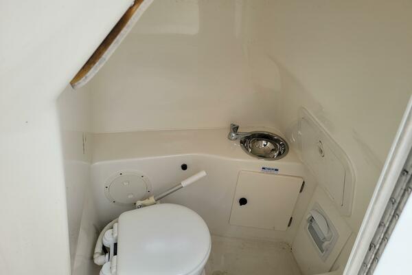 In addition to her primary 250 HP Yamaha she also is equipped with a Yamaha 9.9 Trolling Motor. Her electronics are - Raymarine C97 Chartplotter and Raymarine Ray55 VHF.