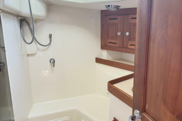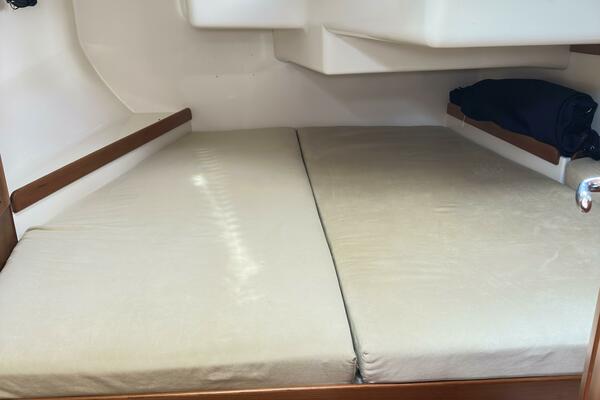 - Forward cabin with vanity sink and full custom V-berth mattress