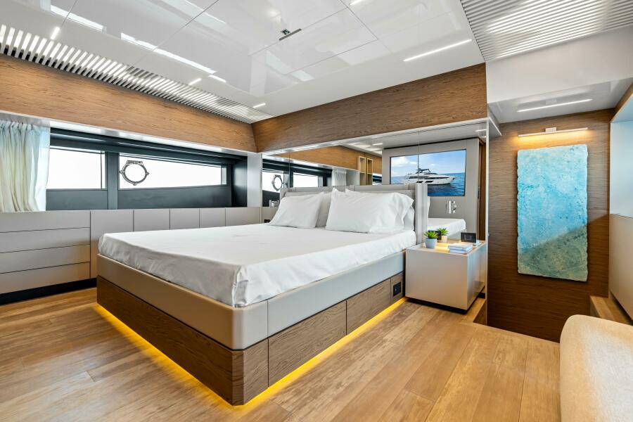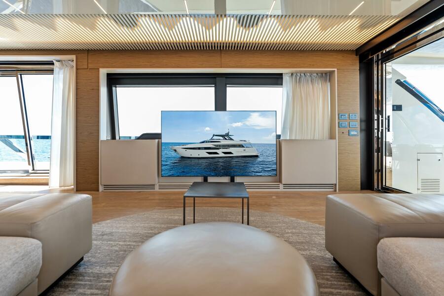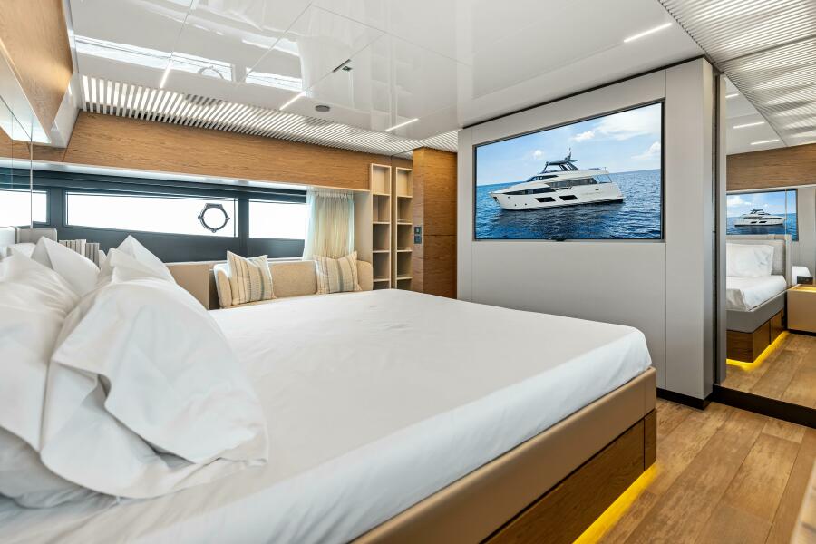 The Ferretti 920 incorporates modern technologies, including air conditioning, stabilizers, and Wi-Fi.
