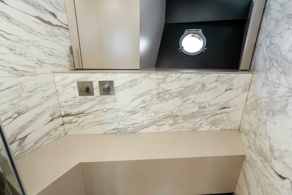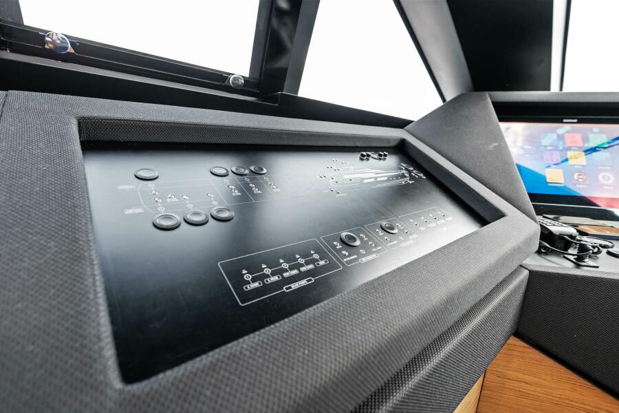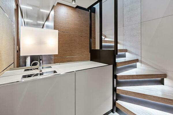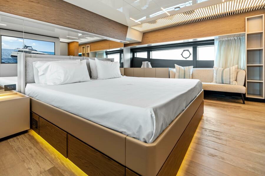 This 920 Ferretti was built with ultimate comfort in mind, with both twin Seakeeper stabilizers as well as hydraulic fin stabilizers. The spacious garage will accommodate up to a Wiliams 435 jet tender or two jet skis.