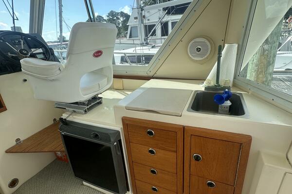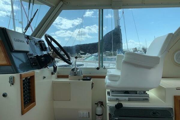 Powered by a professionally maintained Caterpillar 3126 diesel engine with only 1,625 hours and supported by a NextGen generator (180 hours), this vessel is ready to cruise. A Mermaid 16,500 BTU air conditioner with reverse cycle heat, Vetus bow thruster, and freshwater flushing systems on all major systems (engine, generator, A/C) simplify winterization and extend longevity.