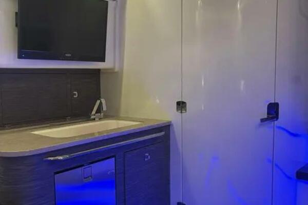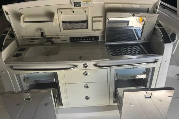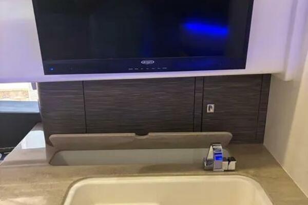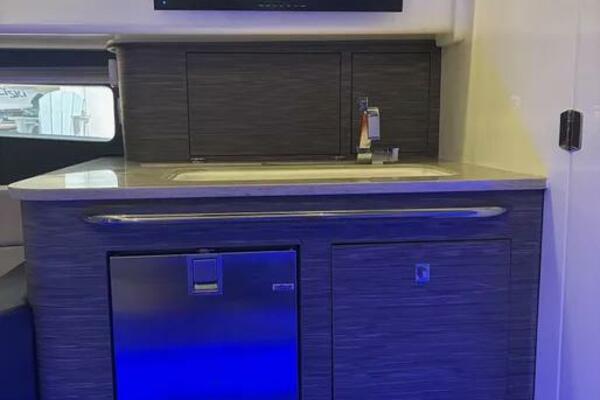 - Refrigerator – stainless steel drawer 12–V/120–V (2.3 cubic ft) (starboard side)