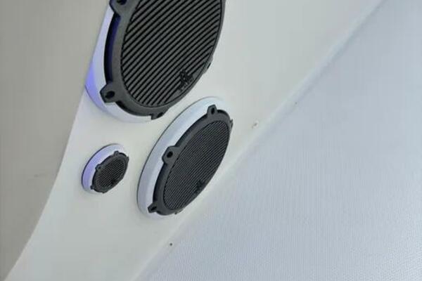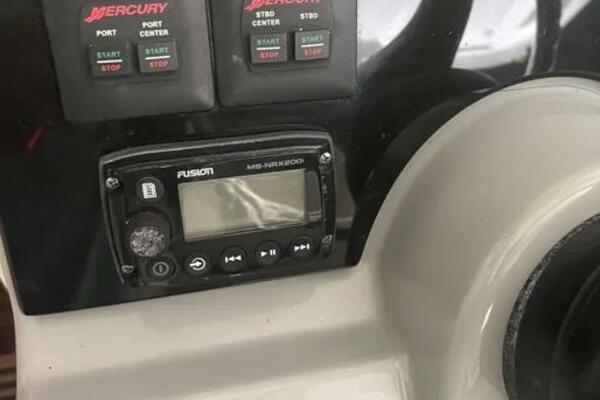 - Stereo - includes: FUSION® integration into Raymarine with Navigation Package, FUSION® stereo DVD/CD/AMFM/VHF, USB AUX input, iPod/iPhone/Android compatible via integrated Bluetooth, Sirius XM option ready, stereo remote controls – helm and bow, MP3/Aux input, JL Audio waterproof speakers – exterior, 7.7” aft cockpit (2), helm deck (4), bow (2), 10” subwoofer, helm deck (2), JL Audio amplifiers (2), JL Audio speakers – interior, 6.5” cabin (4)