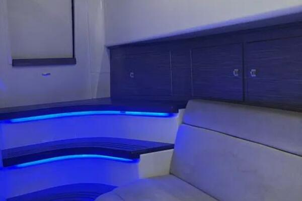 - Insulated built-in storage/cooler compartment at forward end of the console lounge