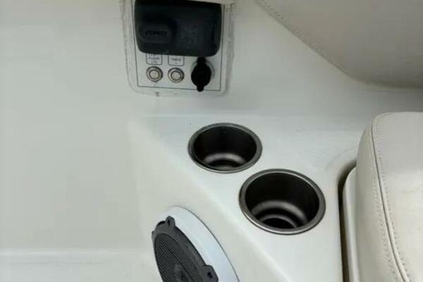 - Forward port and starboard seats with folding backrests and drink holders (4) with stereo remote and 12-V receptacle on port side