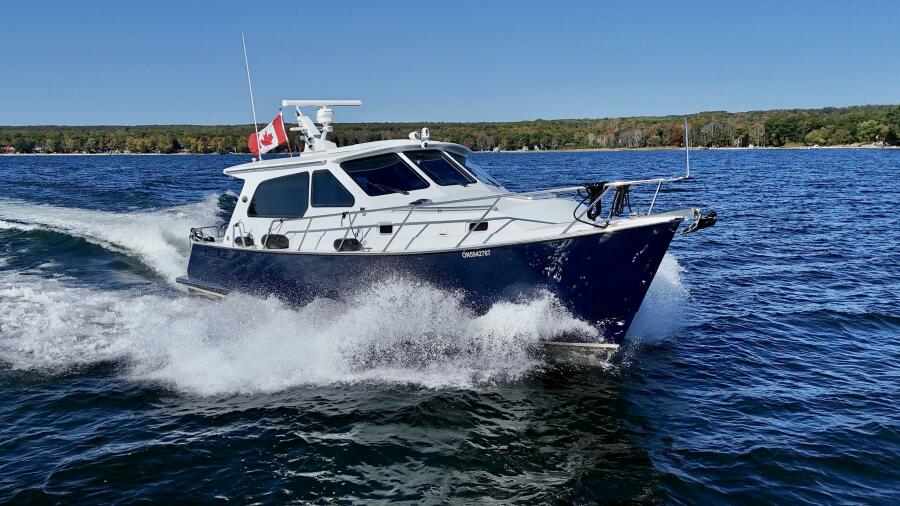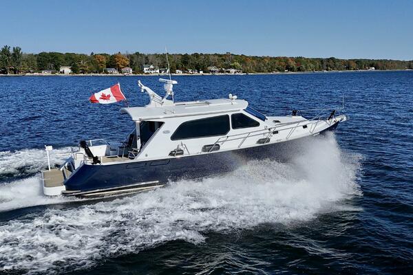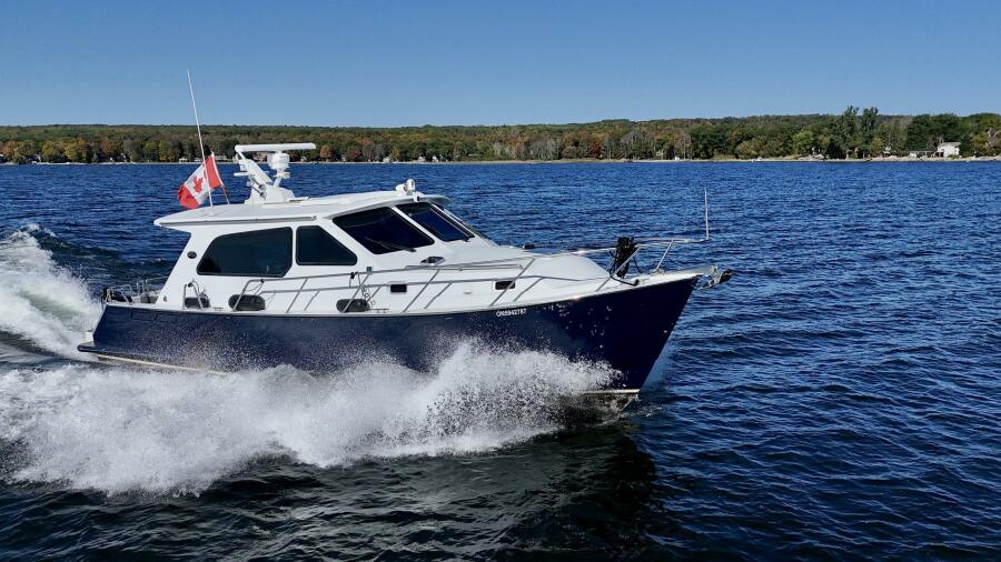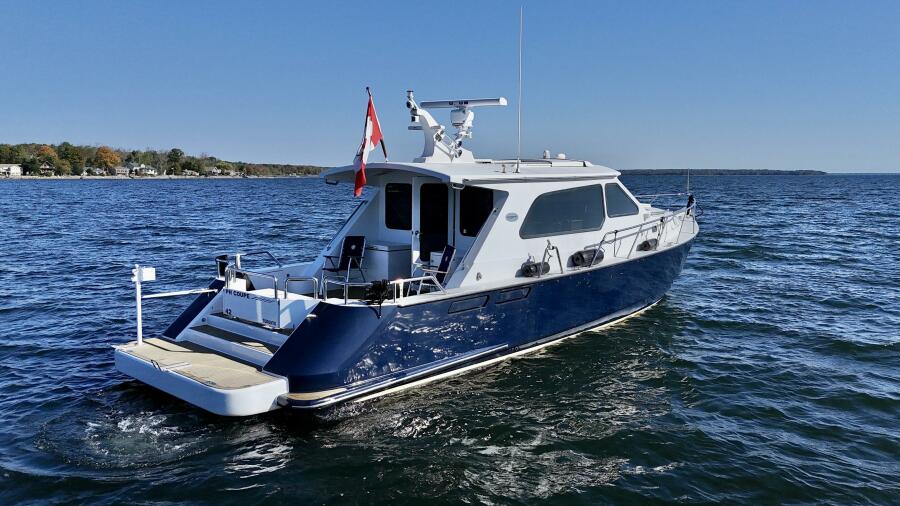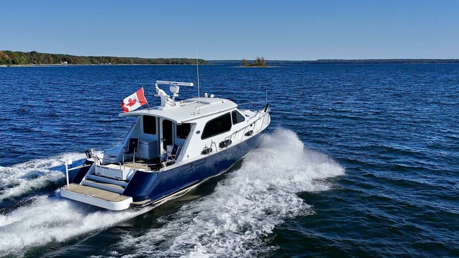 Boatguide Magazine reviewer said: “what struck me most is the flawless perfection of all aluminum welds. Weld seams are not visible to the human eye - another testimony to the skill of craftsmen who worked 16 months to make this dream boat come alive. I had to see it to believe something this beautiful, well designed and engineered could be built in a small Port Dover shipyard on Lake Erie.”