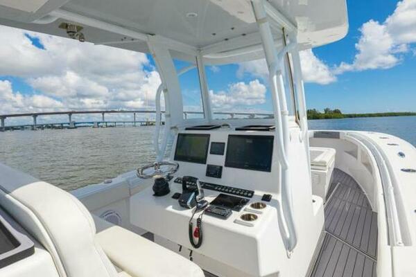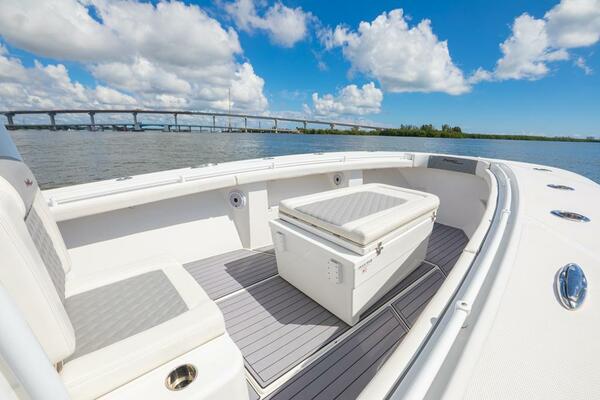 This 2023 33’ Front Runner Center Console combines performance, fishability, and modern comfort. Powered by twin Mercury V8 300s with only 65 hours and covered under factory warranty until 2026, this vessel is turn-key and loaded with premium options.