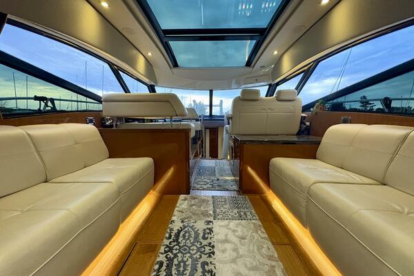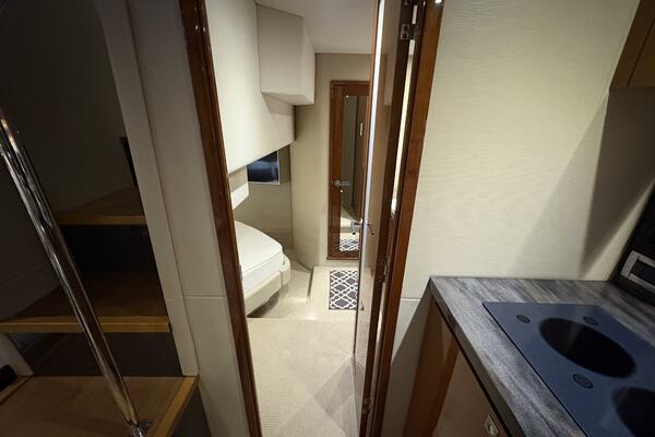 The third generation 470 Sundancer was completely reinvented in 2015 to bring true sport coupe style to the Sundancer model line, ensuring seamless indoor/outdoor entertaining and utmost comfort in all weather conditions. Offering a very unique layout with the lower salon and galley open to upper salon.