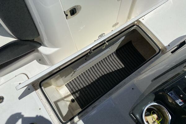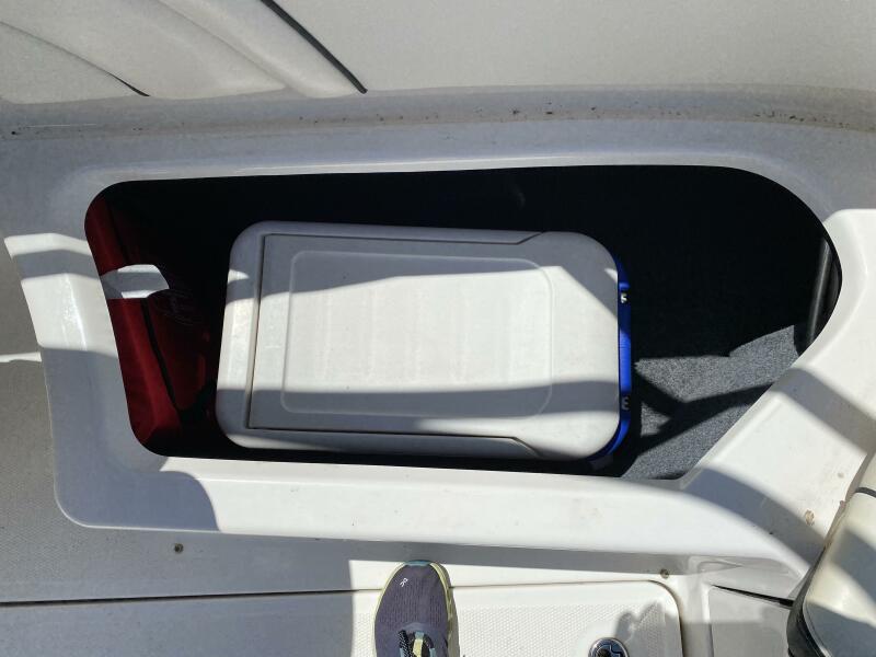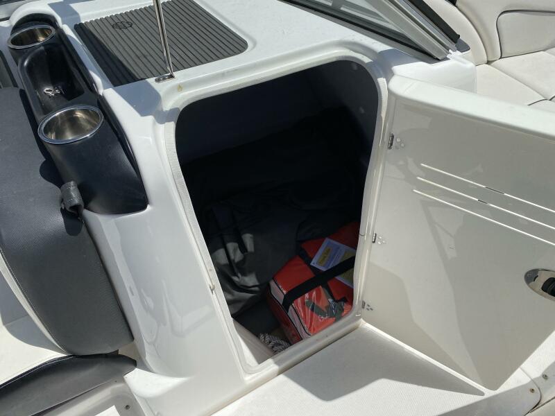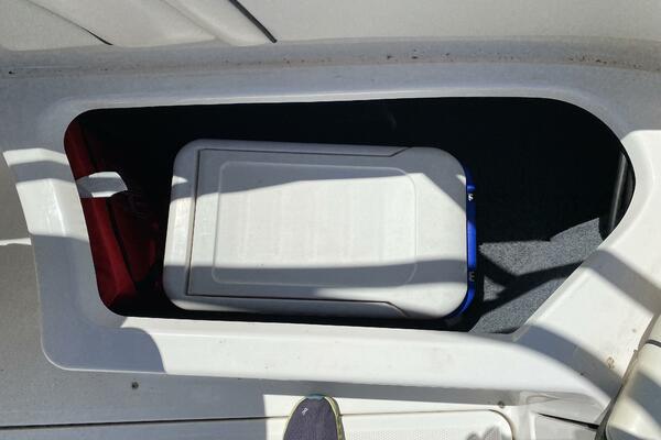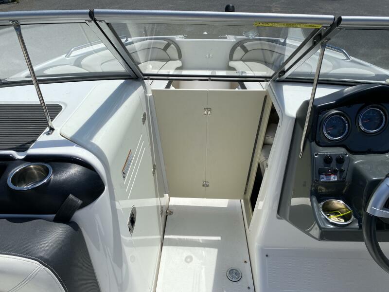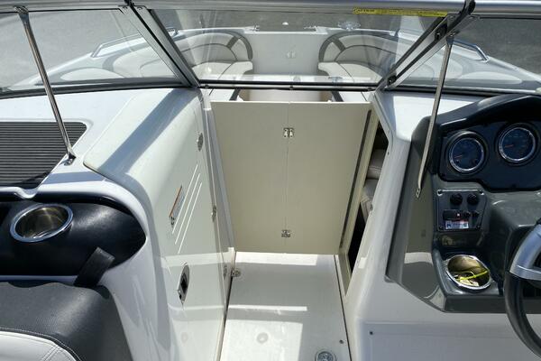 wake speed to find the optimum setting. Also included in the cockpit are a fully enclosed, head compartment, multiplestorage areas for gear, a dinette table side-mount design, and a large removable cooler that stores under the passenger seat.