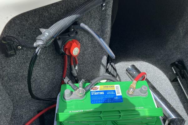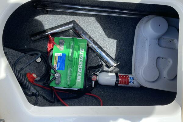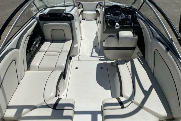 a dinette table side-mount design, a rear stereo remote, hydro-turf deck mats, integrated cup holders, and a reboarding
