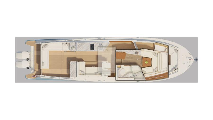 The MJM 47X stands out as a remarkable open-bow express day yacht with the added luxury of overnight accommodations. Owners rave about its unparalleled handling and smooth ride, dubbing it the "absolute best driving yacht" with effortless fingertip steering. Featuring four distinct social areas and a galley-up layout with the protection of the MJM indoor/outdoor pilothouse, the MJM 4 offers a versatile and efficient design. Below deck, you'll find a spacious v-berth, a yacht-sized head with a glass-enclosed shower, and a double berth amidships. Whether you're hosting a gathering or embarking on a weekend voyage, this all-weather/all-condition performance yacht ensures comfort and enjoyment for your loved ones.