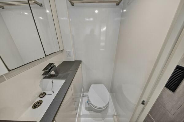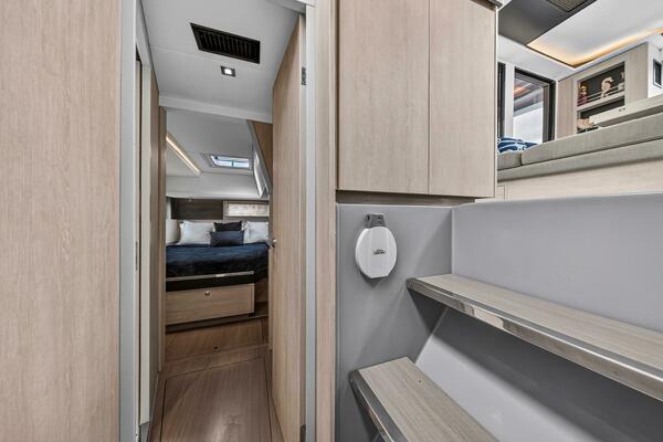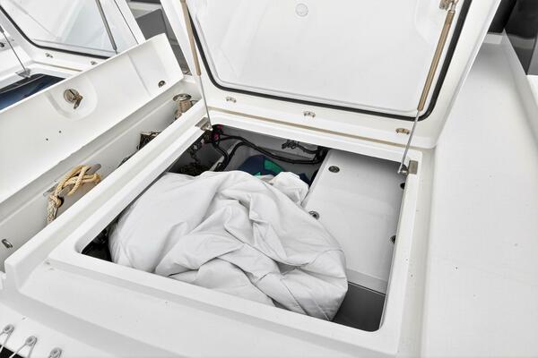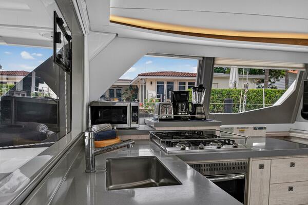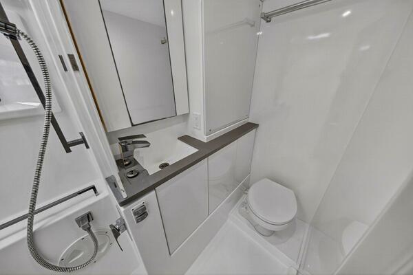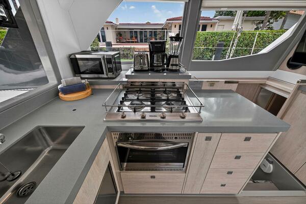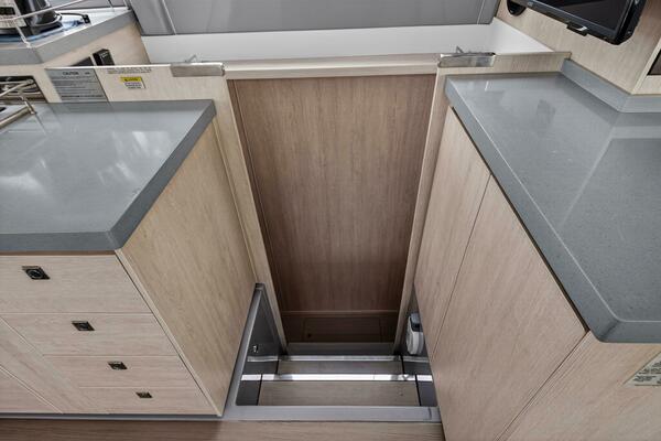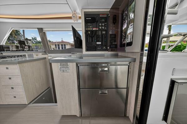 - Upgraded refrigeration includes standard fridge / freezer combo with additional fridges under sink and aft cockpit