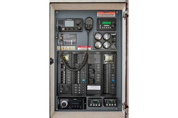 - Upgraded electronics package to include 12" Axiom chartplotter, color radar, AIS, Autopilot, Tri-data wind, speed, and depth transducers, rear camera, and Fusion stereo with upgraded speakers to 6